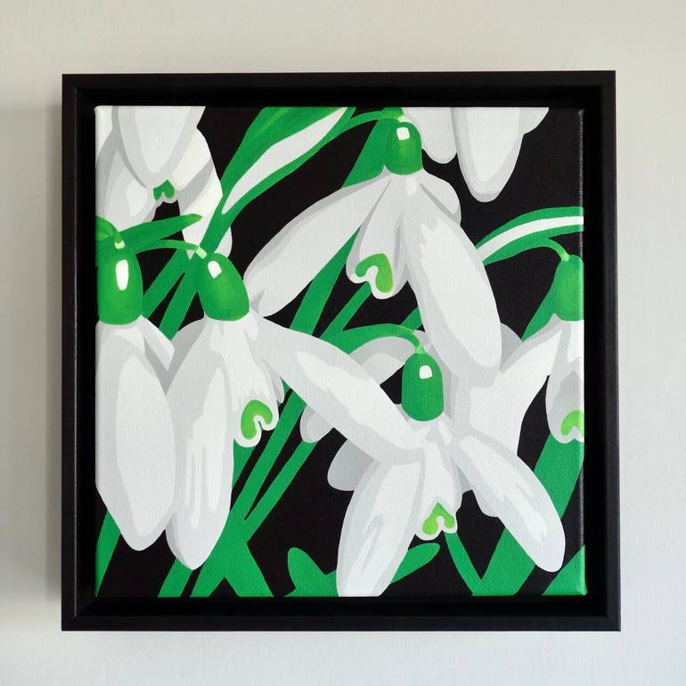 13.5”x13.5”x2.25” including the wooden frame Acrylic on canvas Snowdrop meadow said in Italian is so much more romantic don’t you agree!?