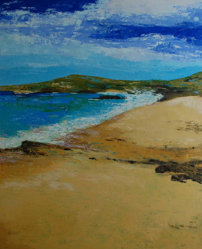 As long as I remember I have been interested in art, in drawing and colouring. After a lot of travelling and life experiences I started full time painting in India in 1988 with oil paint and the pallet-knife experimenting with colours in abstract mostly canvas paintings who often turn out as landscapes, seascapes, clouds or cosmic vibrations. Some are very vibrant, emotional, with strong colours, others are just very quiet monochromes with shades of one tone, all creating a certain feeling or atmosphere. Being as well a musician it is in my art like in music expressing inner emotion without representing the real world. Many of my paintings are a dream world, the world I would love to live in. A memory of ancient prehistoric times, I have had exhibitions in many different countries like India, France, Holland, Germany, USA, Australia, Spain and Portugal. My paintings are with collectors in India, France, Holland, North Korea, Switzerland, Germany, Belgium, Australia, USA, UK, Norway, Spain and Portugal. Saroja's paintings are represented in different private collections of art in India, France, Holland, South Korea, Switzerland, Germany, Belgium, Australia, USA, UK, Norway, Spain and Portugal. And her work is represented in the Museum of Contemporary Art of Sa Pobla, Majorca, Spain.