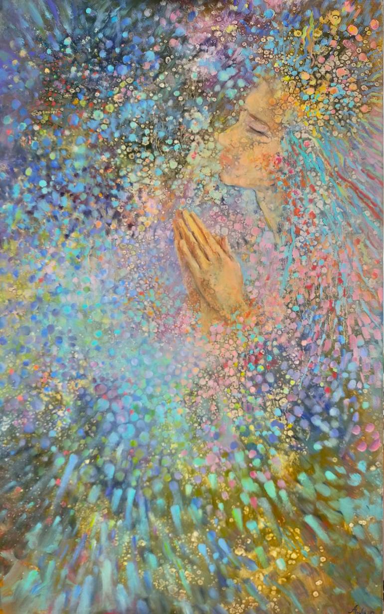 Prayer is a powerful act of faith and devotion that connects us to something greater than ourselves. In this soulful oil painting on canvas, a young girl is depicted deep in prayer, her hands clasped in reverence as she communicates with God. The large portrait captures the essence of spiritual cont...