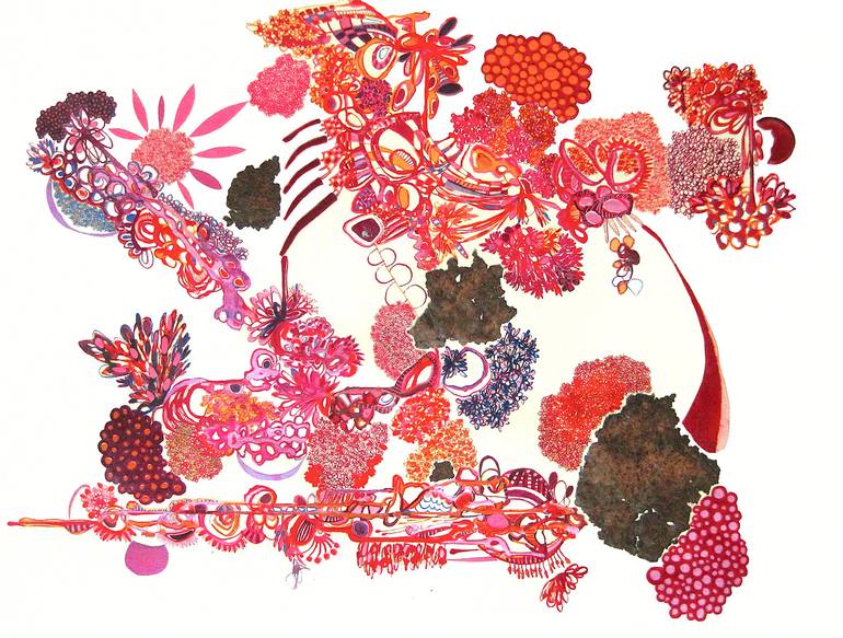 I have been living and working in Philadelphia, PA since 2005. I received my MFA in Printmaking from Pratt Institute in Brooklyn and my BA in Philosophy from Mount Holyoke College in Massachusetts. I currently work in oil, acrylic and collage on canvas and paper; I also work in pen, marker and collage on paper and bristol. Throughout my career I have worked in a variety of media including painting, drawing, etching, silkscreen, lithography, paper-makimg, sculpture and new forms. My work is based on naturally occurring forms from the woods of New England to the city streets of Philadelphia. Rocks; pebbles; stone walls; natural growths; and the detritus of cityscapes make their way into my unconscious and become my visual language. These amorphous pebble, stone, petal and cellular shapes are then infused with color, removing the element of nature and creating a saturated environment of abstract forms. My palette since 2011 is one of blues, pinks, roses, silvers, grays and greens and is evocative of calm, serenity, and frivolity. My use of collaged "remnants" from unused canvasses, drawings and found objects, which are integrated into the canvas, create depth and a push-pull between color, shape and texture. My current work on paper and bristol has returned to the simplicity of black and blue pen. I allow my art practice to happen organically and instinctively, without self judgment. Rather, the circularity of my studio work, from the use of heavily saturated oil to black and white, mimics the forms and shapes that appear in my work. My love of materials, process and mark-making is the impetus for my work and is what pushes each piece forward to it's completed form. When I am not making art I visit galleries and museums in Philadelphia and New York, practice yoga and engage in community services. I also work with collectors, helping them to organize and inventory their art, antiques and other collectibles, through Jacoby ARTchiving. Visit me at: and