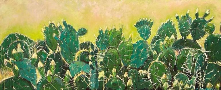 I was driving down the road, leaving a friend's house just outside Santa Fe, when I saw this prickly pear field of cactii and had to stop and sketch and photograph it. That jaunt has resulted in several paintings, the most ambitious of which is this one. I wanted to get the fullness of this patch,...