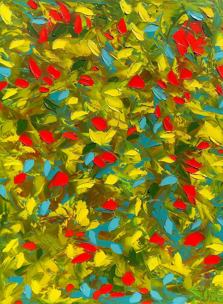 Painting is a mental, physical, and spiritual experience that takes me away to another place and time. I get lost in a world filled with vibrant color, rich texture and swirling movement. When I come back, I bring a piece of that world back with me. I am fascinated with color relationships and I obsessively experiment with the possibilities in each of my paintings. My collectors say my use of color is one of the main reasons they love my work. I paint thick, vibrant, oils on canvas influenced by the color, movement and texture found in the natural world around us. My recent paintings are designed to be hypnotic. I start with a big flowing design that keeps your eye constantly moving and returning back into the canvas. Then I develop more detailed layers that engage on a deeper level. I don’t want you to look away and always see something new each time you view it. Being prolific is something I’m known for. I have a huge body of work that has grown and changed over time. Visitors to my studio are always impressed by the impact of so many of large, original oils. I have my art hanging in businesses, hotels, restaurants, wineries, public buildings, mansions and homes around the world. I have dedicated my life to developing an original technique that utilizes the highest quality paints, canvases, tools and finishing. Although, what I am most proud of is that people say my work makes them happy.