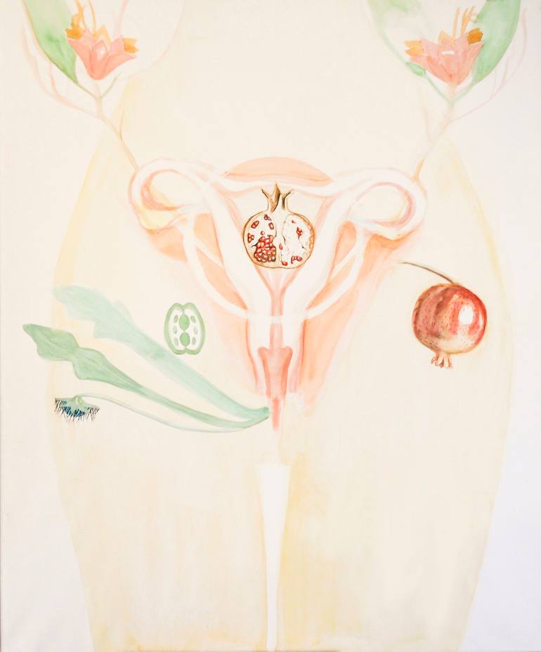 Frigile, abstract, feminine, flourishing, strong and present- this all includes this abstract painting about being a woman, girl.