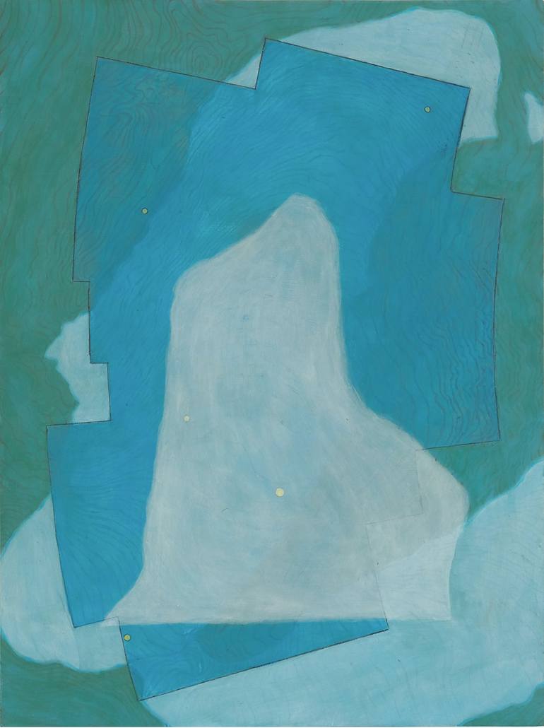 My latest paintings, entitled “Profiles in Ice” are expressions of appreciation and hope as we face climate change and the vanishing cryosphere. Celebrating the beauty and transience of the frozen landscape; the massive glaciers and monumental icebergs. These paintings consist of three features: 1. A background depicting a map of a frozen landscape. 2. An overlay of a celestial constellation map, which provides a reminder of the global, planetary effect of this crisis, as well as a time stamp superimposed on the threatened landscape. 3. And lastly, an iconic figure of a fading iceberg. I use multiple layers of thin paint to build up the paintings. I remember how impressed I was when I first heard how some painters used layers and layers of translucent paint so the light would pass through the colors and bounce back to the viewer.  The paintings are acrylic on wood panels. They come complete with hanging wire and are ready to hang.