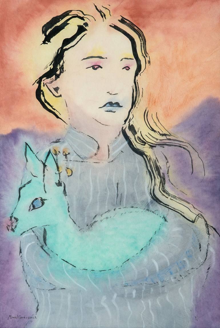 Ink and Watercolours on Kitakata washi -Japanese traditional paper- 70 cm x 47 cm approx. wet mounted onto Kosuke paper.