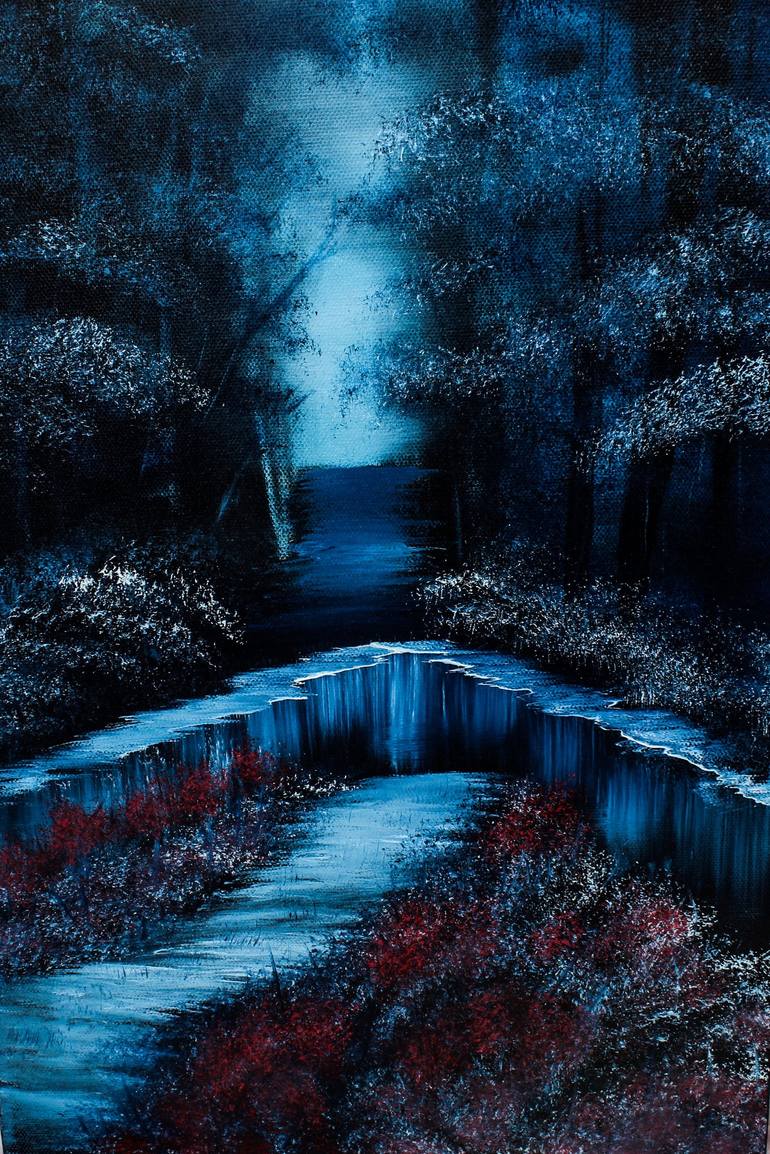 "Prussian Path" 12 x 36 Oil Painting on Canvas This is a piece I did after realizing my love for the color blue. Prussian Blue has a history, that I feel reflects in the actual hue of the color. Letter of Authentication provided with Purchase.