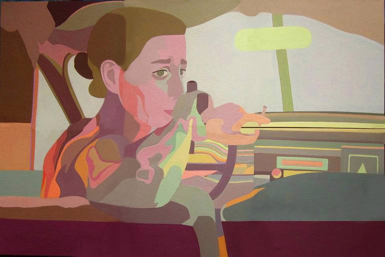 Cinema action scene, Woman in the car, Figurative,