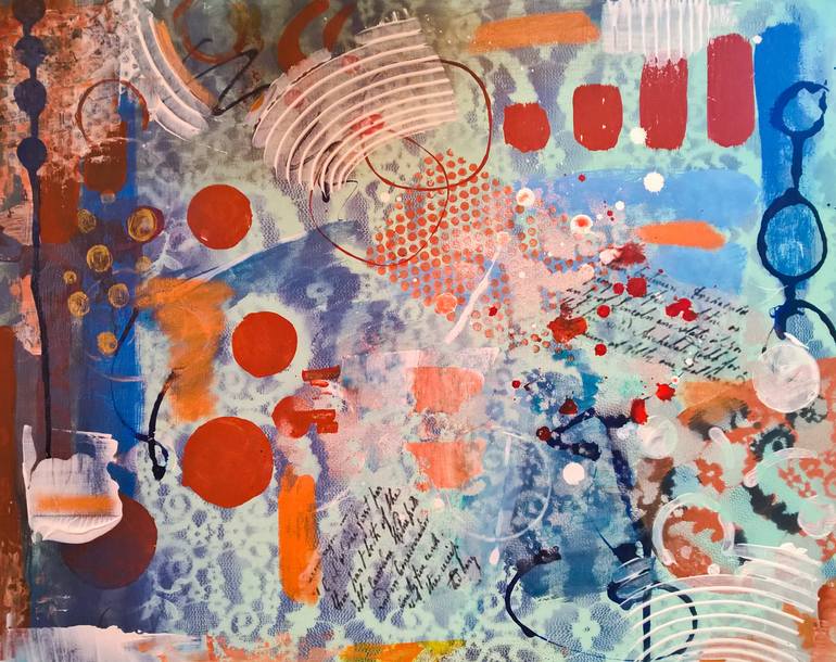 I started out with this piece just wanting to work in various shades of blue, but ultimately needed a contrasting color and broke out the pumpkin spice colors added on top. I like the layers of textures and color in this one knowing that I was not intending on adding orange initially. 16 x 20 on ca...