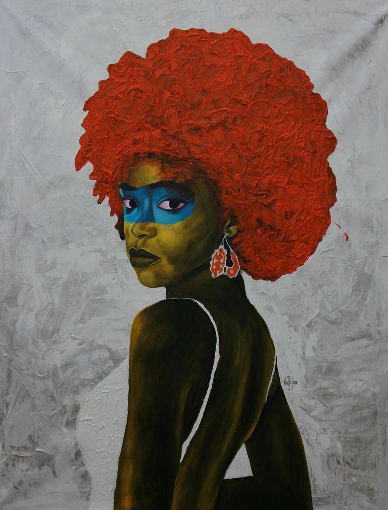 In his work, Tetteh condenses the internal sentiments and tensions of his characters and focuses them, using the eyes as the outlet for expression. In this way his subjects become independent bodies, bold and daring. By examining the psychological conditions we as humans are prone to experience, and then exhibiting them through physiological manifestations of that experience, Tetteh’s work is processual in nature, approaching each personality with care and consideration. His experiments are not only in content but in form, colour, and texture, manipulating paint through swift brush strokes and thick impasto. Theophilus Tetteh (b.1991) lives and works in Accra, Ghana. He studied Graphic Design and Painting at Marimus Art School, whilst continuing to experiment with different media. After finding solace in the pictorial possibilities that Expressionism offered, he found figurative paintings most effective in exploring emotive qualities. His figures which often appear static and singular, are in fact dynamic entities of the local culture. Tetteh has participated in solo shows and group projects across Ghana, notably the Kente Design Project for Kejetia Market (Kumasi, 2017) and National Theatre of Ghana (Accra, 2018). He was recently awarded Artist of the Year (2021) by the BE OPEN Foundation and is also a member of the Ghana Association of Visual Artists (GAVA).