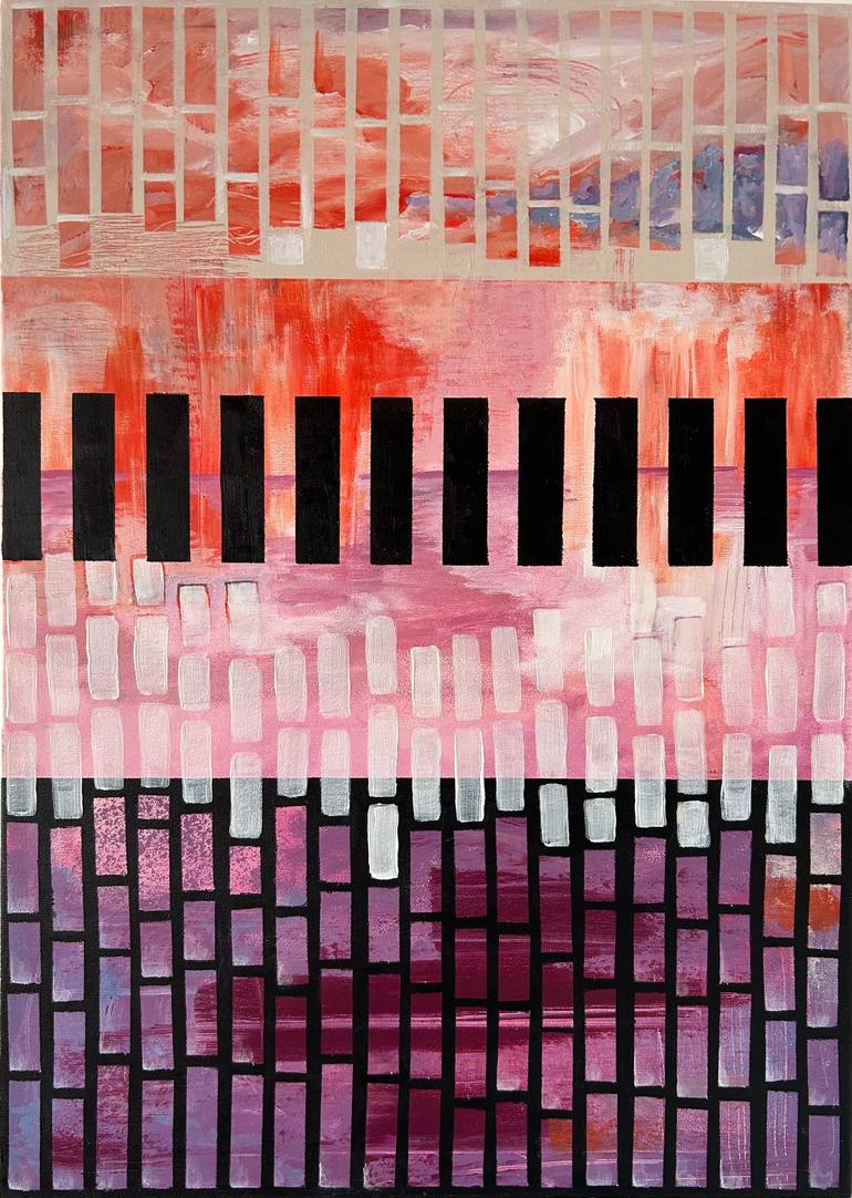 Samantha Malone is an Australian/Israeli artist based in Tel Aviv. Her work is about movement, balance, and the way shapes and color interact on the canvas. She is interested in creating compositions that feel rhythmic and alive, where structure exists but doesn’t feel rigid. Geometry often sits at the base of the work, softened by intuitive marks and a more fluid process. She works with acrylic paint and mixed media, building layers of color, line, and pattern. Shapes are adjusted, broken apart, and reworked, with sometimes parts of the surface scraped back to reveal what came before. This layering adds depth and keeps the work open and dynamic. Color is central to her art practice. She use contrast and repetition to create a sense of flow, inviting the eye to move across the surface and linger. The paintings are abstract, but they aim to feel playful, considered, and connected, leaving space for the viewer to bring their own meaning to the work. Samantha has exhibited internationally, including participation in the prestigious 2023 London Art Biennale. Her works can be found in private collections across Europe, the UK, the USA, Asia, Canada, Australia, the UAE and Israel.