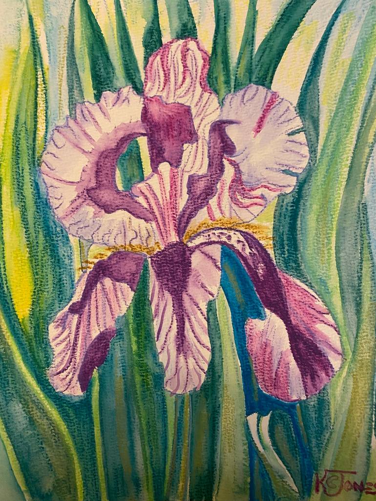 Purple Iris Watersoluble crayons 9 x 12 inches Listed is an original painting titled “Purple Iris.” This is a super favorite flower of Louisiana folks! Irises bloom from late spring to early summer DETAILS: This painting is created with water soluble crayons…a favorite medium to work with! I lov...