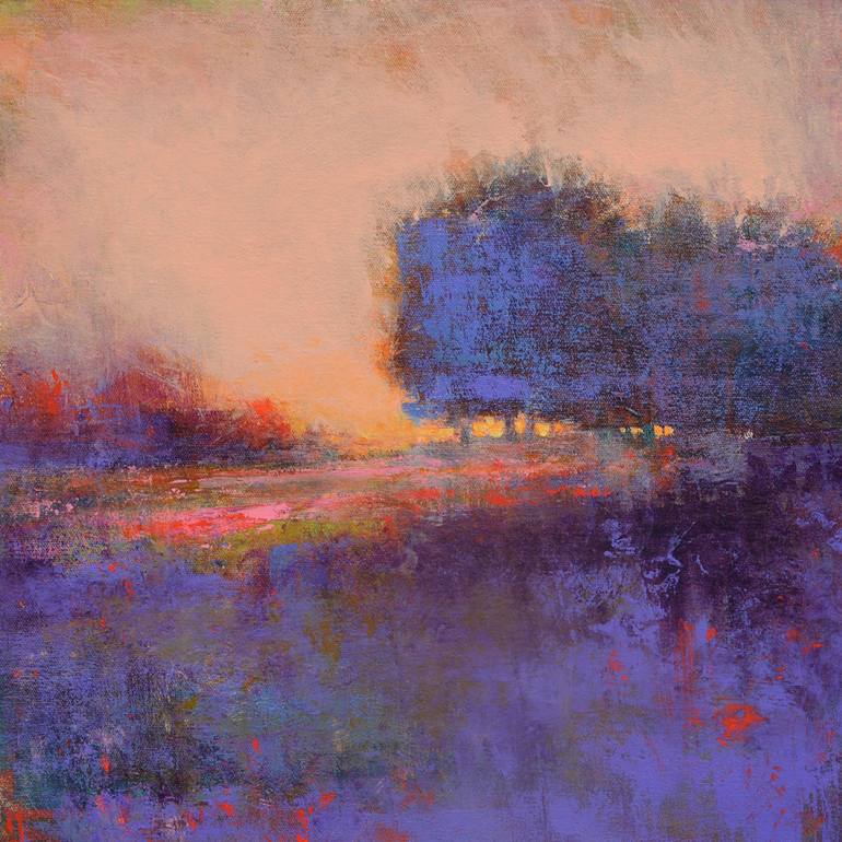 Purple Landscape Monet style abstract impressionist landscape. 16x16 acrylic painting, on flat canvas. This modern landscape has rich colors and texture. Actual painting size is 16x16 inches on loose canvas with extra white canvas border. -Don B : )