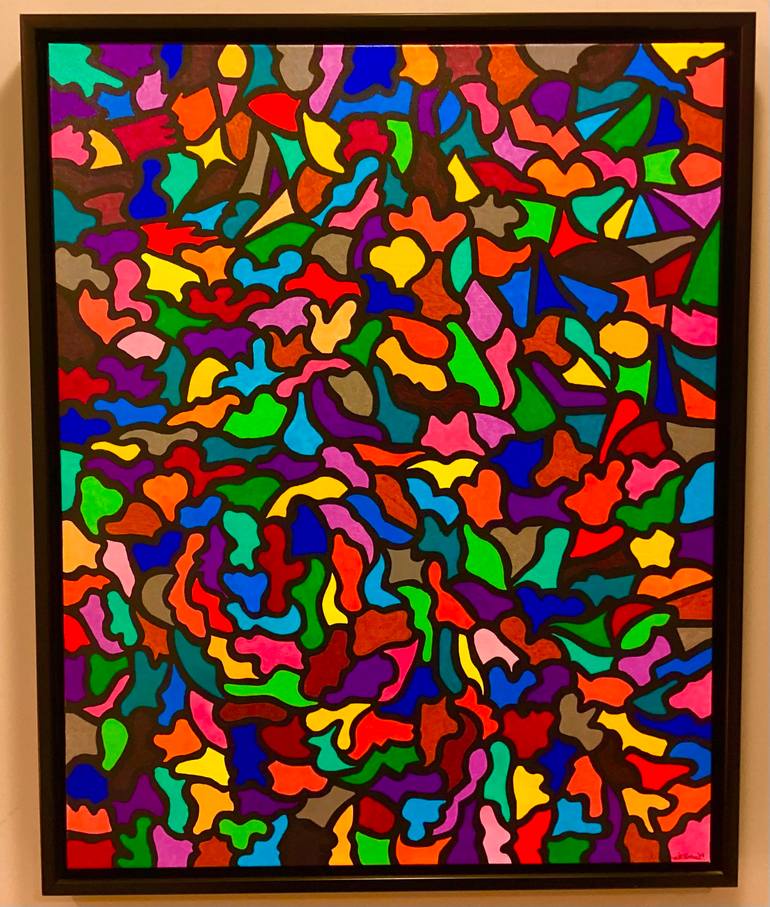 Bill discovered painting and the visual arts after a 45 year distinguished career as a corporate executive. He is entirely self-taught and works with acrylics, glass paint, and mixed media to create works of abstract expressionism, concrete and hard-edge art. His focus is on colors, shapes, textures, depth, energy, and time. Because of his masters degree in psychology, he also incorporates themes of human behavior in his works. His goal is to create a dual sensory experience that combines the visual and tactile senses. He loves it when the viewer reaches-out and touches his paintings.