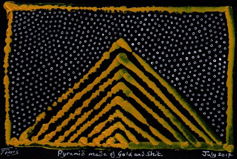 I grew up in the land of the slagheap. Industrial waste from the pit was dumped on the top of the cliff. There were many marvellous fossils contained in the rejected rock. Wealth is built on misery. By shaping it into a pyramid, the image proclaims falsehoods that are universally accepted.