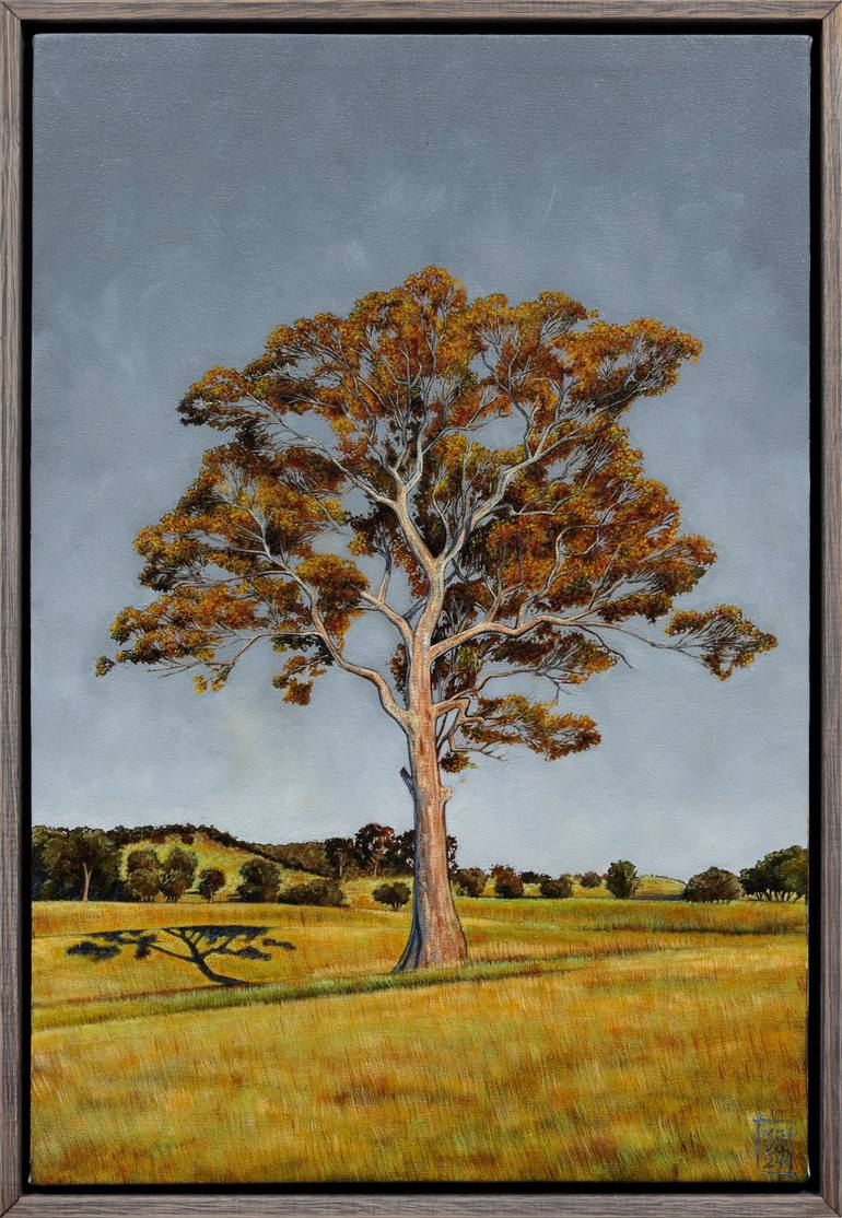 Pyrenees Landscape XVI - The Tree In my latest painting, I return to one of my favorite subjects: a venerable Eucalyptus Tree in the Victorian Pyrenees region. This tree has appeared in my previous works, but now it takes center stage. Its form has always evoked the cypresses of Japanese woodblock p...