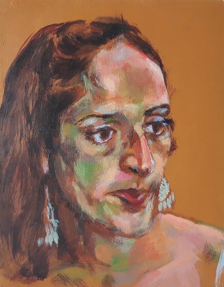 Acrylic on hand-cut board, 2020. "Qetzali". Toronto, Canada.