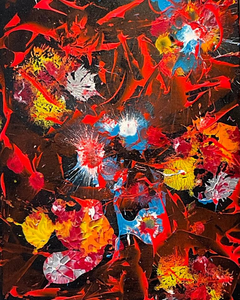 "Quantum Chaos" is an original abstract painting inspired by the groundbreaking images from the James Webb telescope. The acrylics on canvas explode with bright colors, capturing a sense of both vibrancy and underlying turbulence. The textures invite closer inspection and reveal the dynamic interpla...