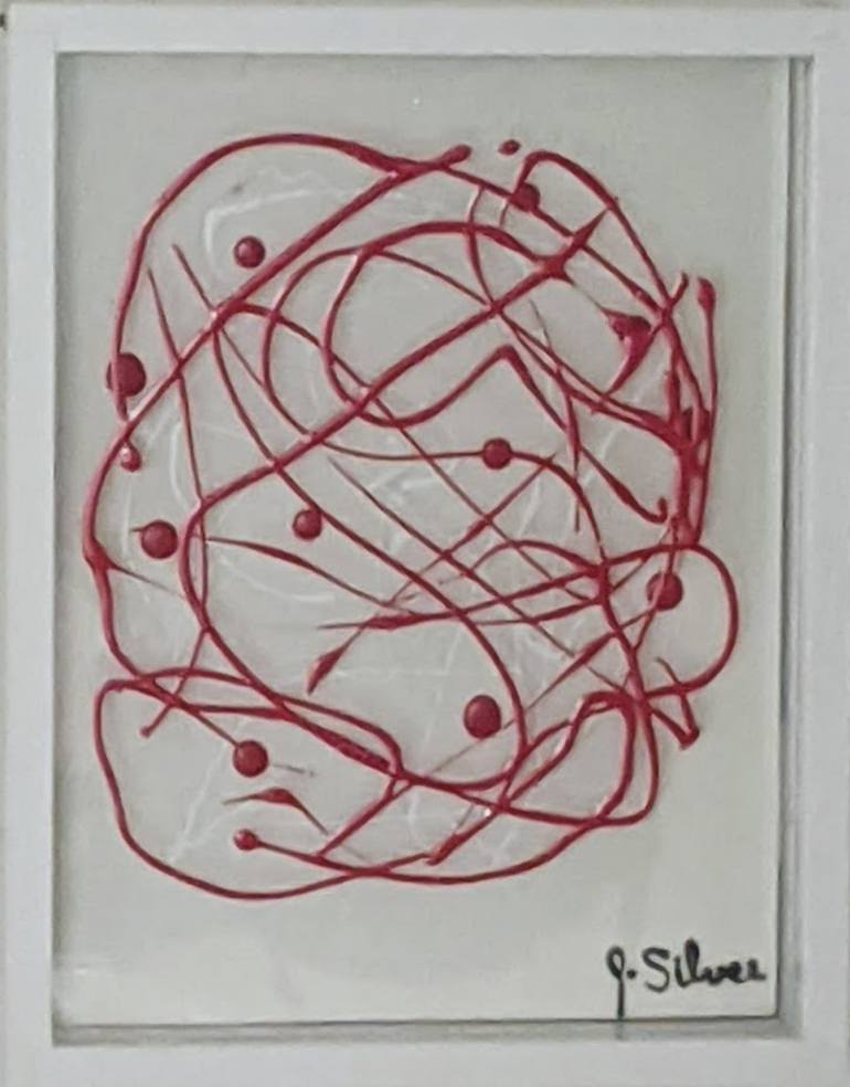 As an experimental abstract artist I like to use different grounds and mediums to see how they react and how I can make them work together in harmony. I've wanted to paint on glass and on the background for a 3 dimensional effect. This piece consists of acrylic red paint on glass and white paint ...