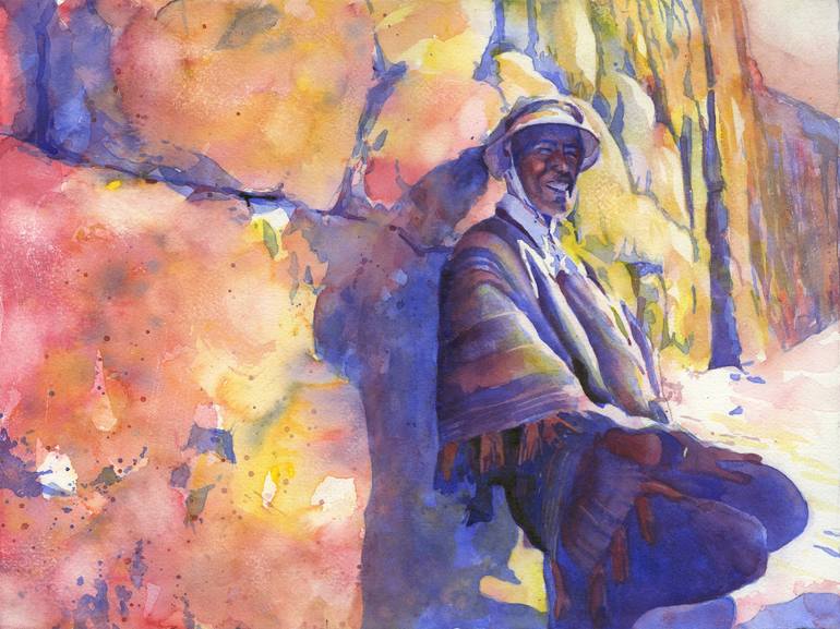 Quechua man in traditional garb in the Sacred Vallley, Peru. Watercolor painting people Peru. 11x15" original watercolor on 140lb professional watercolor paper. Hand signed by artist (not pictured). Unframed. Painted by artist Ryan Fox. Ryan Fox is a signature member of the American Watercolor...