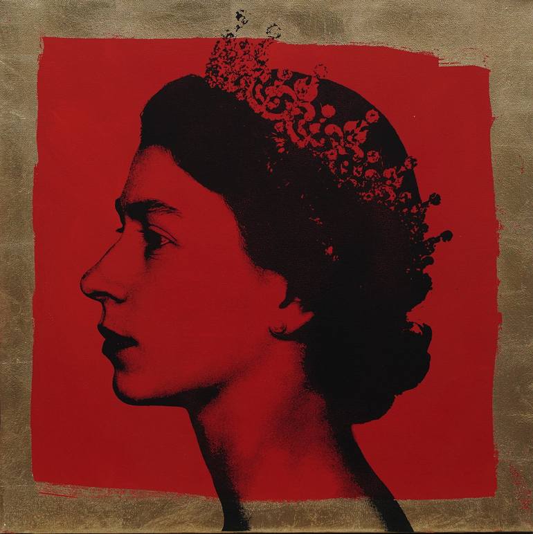 Queen Elizabeth II Pop Art painting on canvas. Ships unframed in a box.