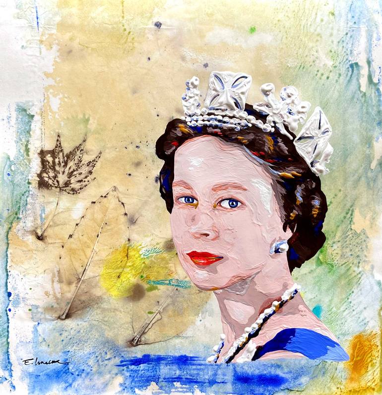 Different emotions, moments, places and people inspire my creations. I tend to "collect" them, by the action of painting, and this way I can capture them in a unique way. This work is inspired by Queen Elizabeth II. Original painting, 100% authentic, fine art, signed by the artist with a Certificat...
