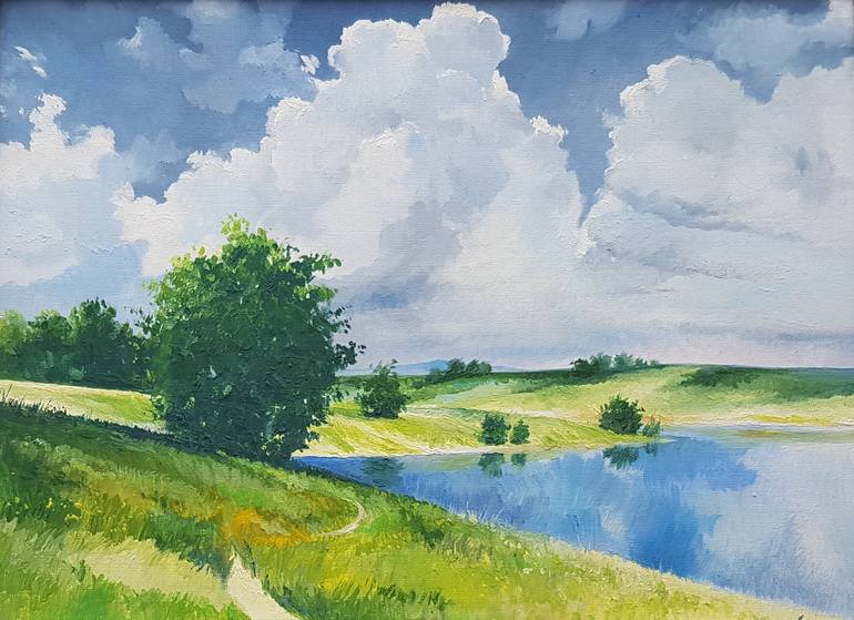 Summer in East Kazakhstan. You can still find a lot of such untouched places there. Dimensions unframed (height x width x depth): 12,0 x 15,75 x 0,2 inches. Dimensions framed (height x width x depth): 14,75 x 18,7 x 1,0 inches. Some information about the artist: My name is Alfiya Safi. I live and...