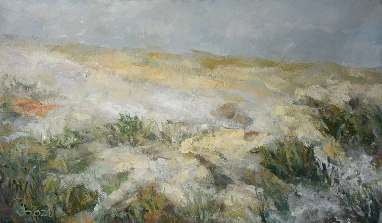 This painting represents a corner of a wild seashore on a cloudy summer day. I was impressed by the atmosphere so peaceful and calm without any strong sounds, as the sea was very calm and without vivid colors, as the sun was hidden behind the clouds. In fact, the shore presented itself with very fe...