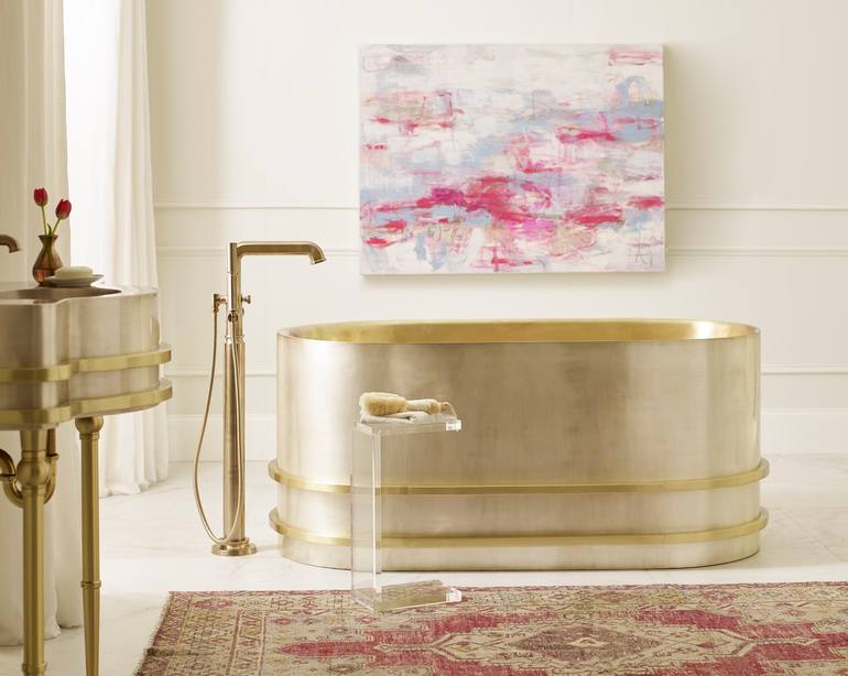 This Amy Heywood original is a 48” x 36” mixed media painting (oil, paint, fine milled plaster) on canvas. Each painting is created and shipped out of Greensboro, NC, with title and signature on the back.