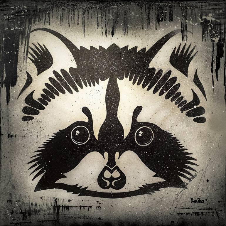 Raccoon is part of a series of four animal face paintings by swiss artist aemka. Original has been SOLD.