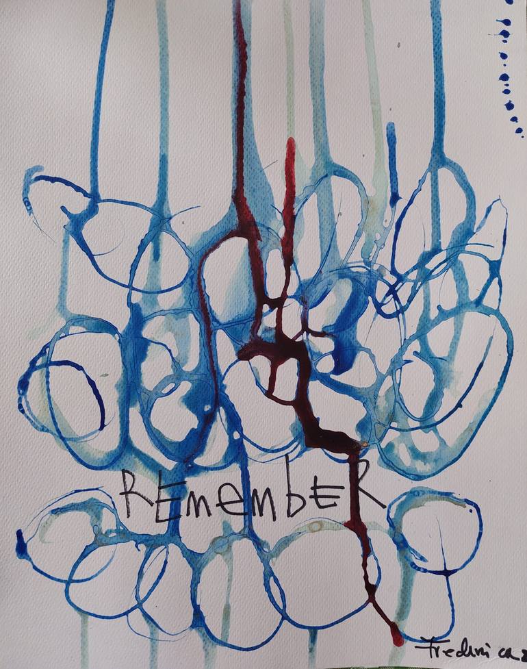 The work inspiration came from the WORDS.I hope viewers will feel inspired, because of the fluidity of the forms, AND HOW THEY MERGE WITH THE WORDS.I choose paper, because I like the texture and it makes a great combination with the watery acrylic, and we can see the paper texture throughout the pai...