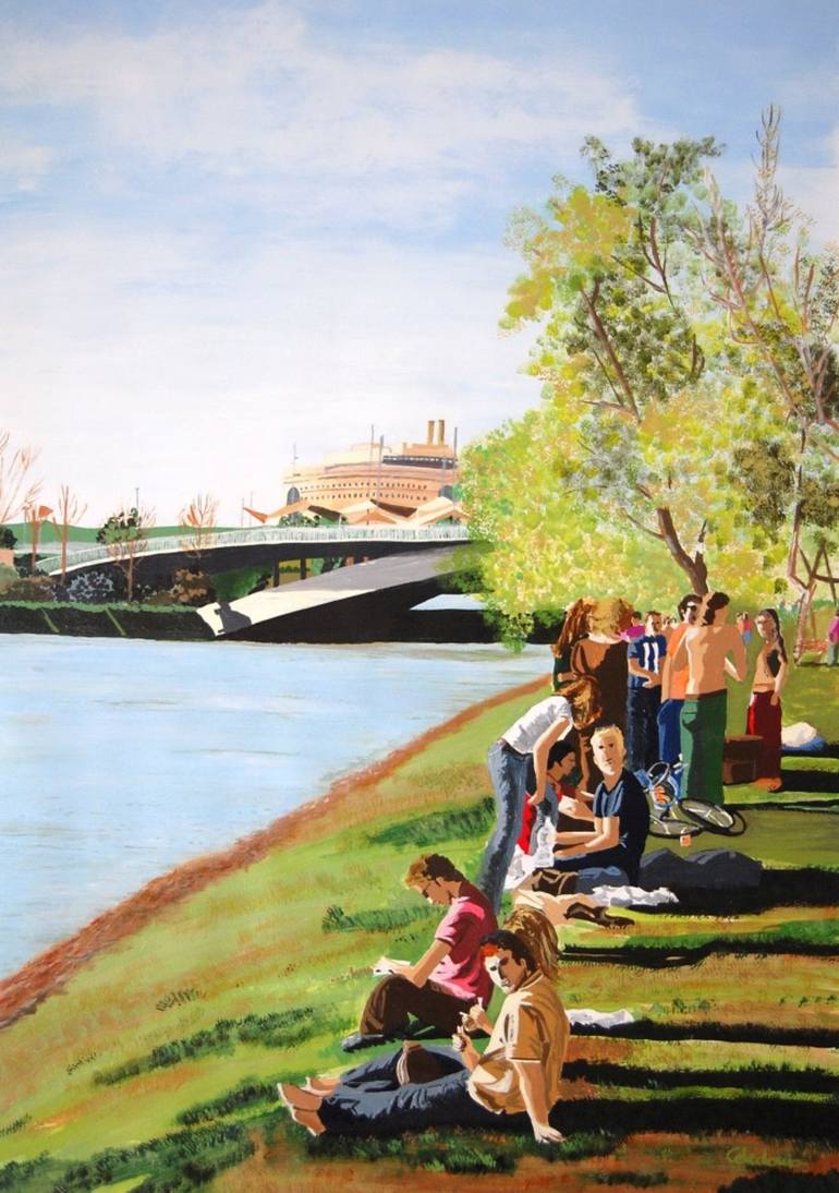 I love walking along the shores of this Guadalquivir river, because it is surrounded by a landscape that mixes modern and traditional architecture, full of light and color. I painted it with acrylic on fine grain Arches paper, on its shore, on a very bright spring afternoon. Feel the warm sun and...