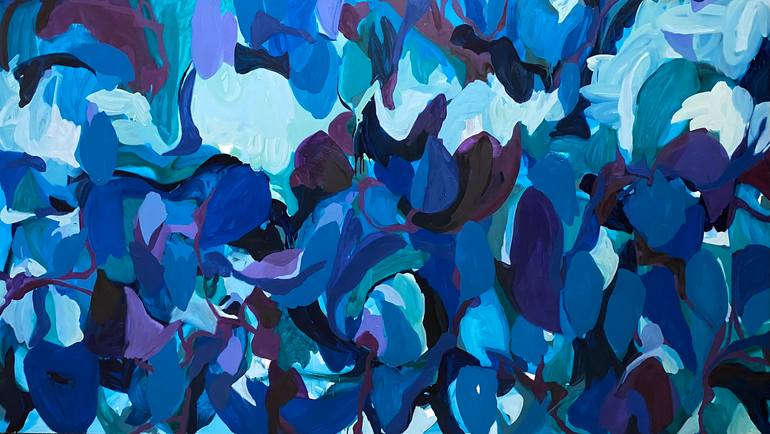 REVISITING EVE is a large abstract oil painting from the Navigating Eden series. It captures the essence of nature through the fluid gesture of affection shared between sky and sea. Evoking the tranquil sensation of water gently washing away the day, carrying us forward towards the promise of anothe...