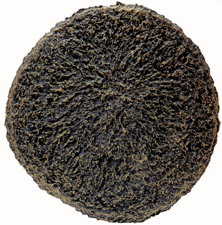 This textured wall sculpture uses recycled paper and recycled black inkjet printer ink. A top coating of gold color gives off reflective highlights. Ready to hang- lightweight It is microchipped authenticated, I am the first artist to authenticated artwork with a 18 digit RFID number. Investment op...