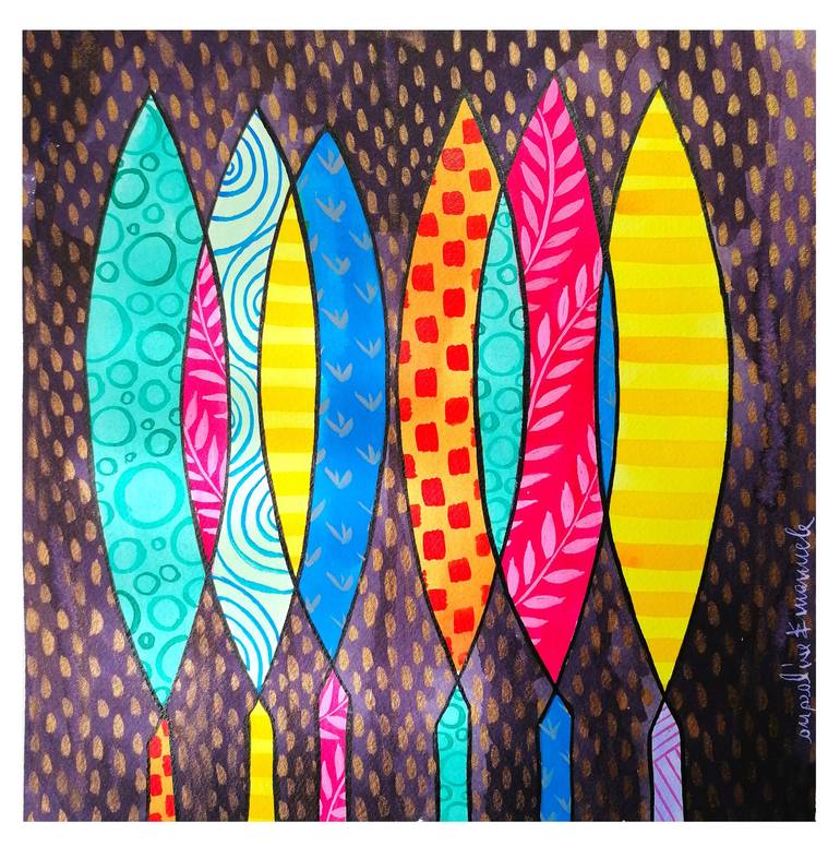 -illustrazione contemporanea a colori di paesaggio con alberi -i tratti e lo stile sono unici originali e di mia fattura -il disegno è realizzato su carta fabriano 100% cotone 300 gr con inchiostro di china -firmato sulla parte frontale -le dimensioni totali sono di 27 x 27 cm -l'opera viene spedi...