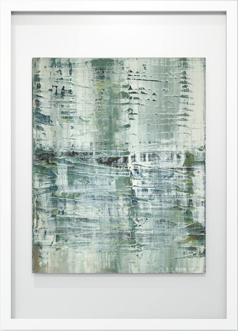 OIL PAINTING ON CANSON COTTON PAPER 300g/m², Acid free 100% cotton Made in France The painting entitled “Rivers” is an abstract work that captures the fluid essence and the shades of greenish tones of the moving waters. With vertical and horizontal dynamic brushes, the texture of the paint imitates...