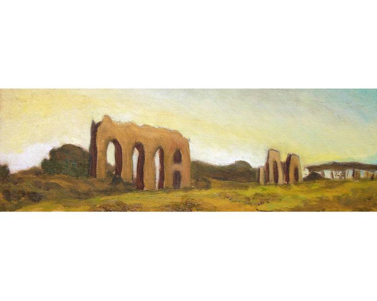 ROMAN COUNTRYSIDE LANDSCAPE: THE ANCIENT ROMAN AQUEDUCTS IN THE ROMAN CAMPAGNA #002 - Italian and roman countryside landscapes, oil on wood series In painting I am not only to discover the Natural Landscapes, because the Roman countryside is also History (the mythical places of ancient Rome), Archi...