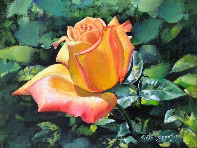 ARTIST: Aibek Begalin WORK: Original oil painting, handmade artwork Medium: Oil on canvas panel YEAR: 2022 STYLE: Realism SUBJECT: ROSE SIZE: 9" x 12" x 0,2" inch Unframed ROSE Rose in the secret garden lit by the sun. A rose in a garden is life and beauty. Aibek Begalin was born in 1963 in Astana...