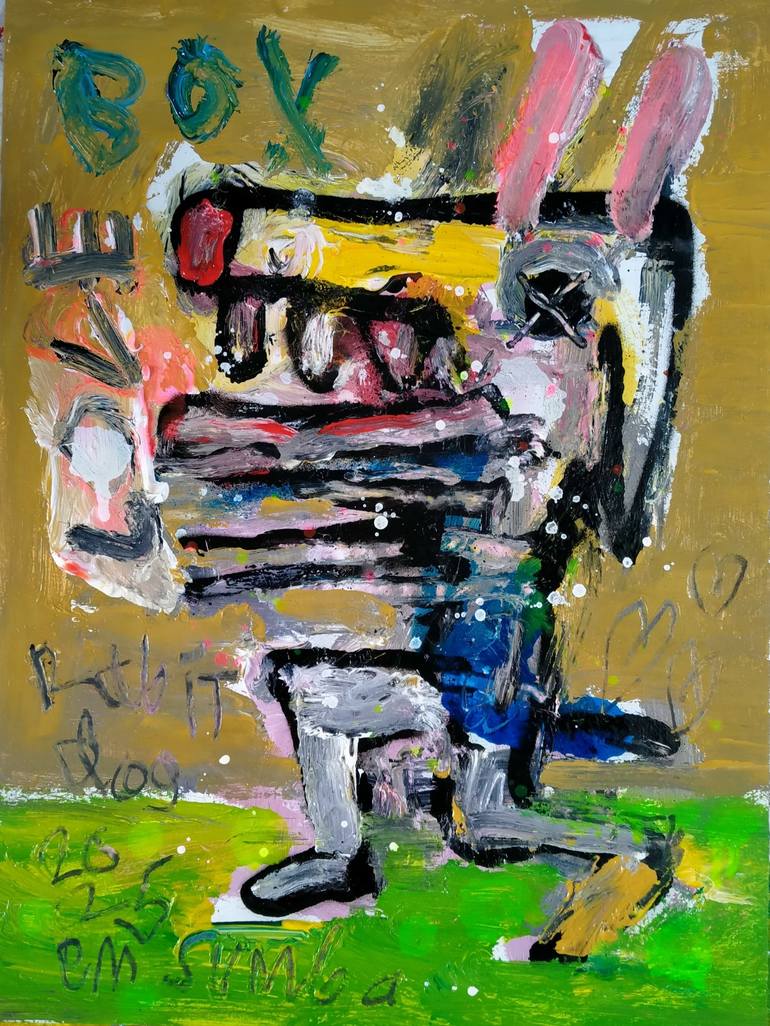 Rabbit Dog by Martinus Sumbaji Acrylic and spray paint on paper, 30x40cm, 2025