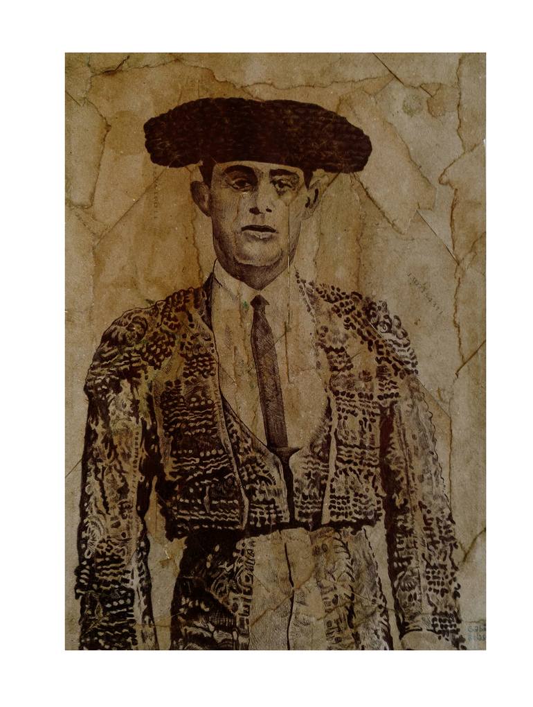 This artwork is done using only ballpen over recycled cardboard. We can see a Rafael González Machaquito portrait. Rafael González Machaquito is one of the best toreros (bullfighter) in the all history and probaly the bravest. He was born in Córdoba. He is a myth. In this painting I talk about the a...