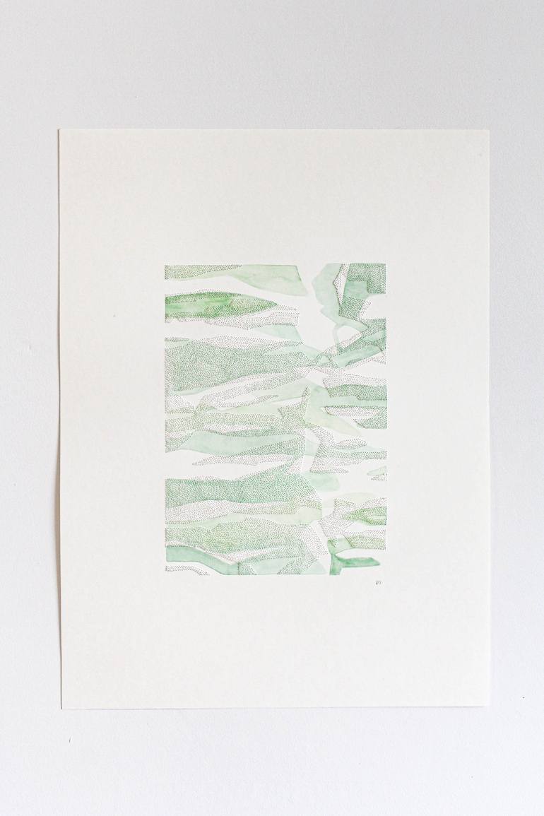 b. 1991 Nottingham, UK Demi creates sculptural works on paper as she explores drawing and mark making using pinpricking, sewing and painting. She uses her experience of landscape as her starting point, inspired by maps and aerial imagery focusing on stark areas such as mountains, canyons and deserts and translating them into her own minimal abstract language. The work intentionally slows the creative process down to inspire a meditative practice as the visual information is paired down to a minimum, hinting at features found within nature.