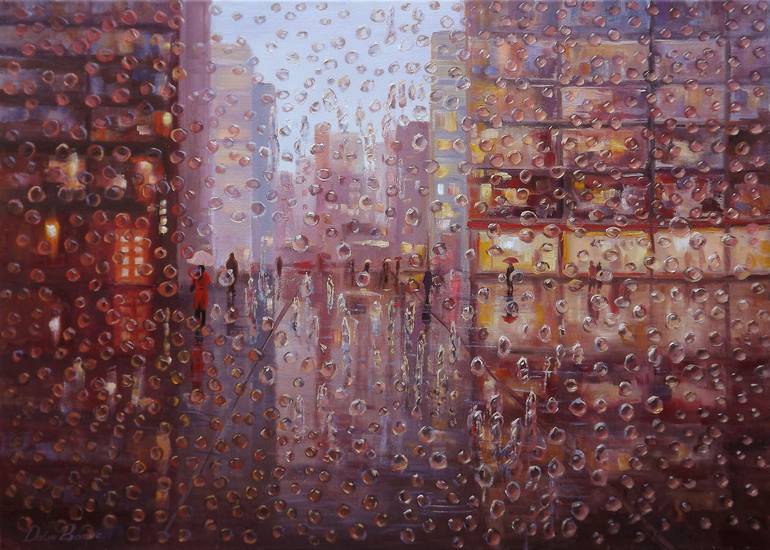 Original painting on stretched canvas. Impressionist painting show how artist imagine city through the window ... Artist: Dalia Barke