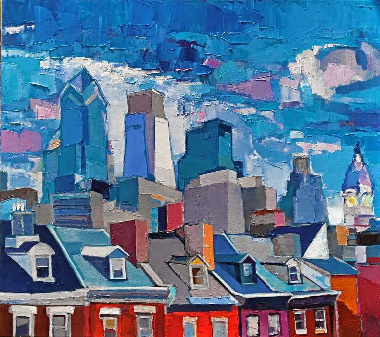 Original large cityscape painting. Oil over acrylic underpainting on canvas stretched on a wooden frame. My small homage to Louis Sloan, a wonderful painter and my professor at the Pennsylvania Academy of Fine Art. The master-quality material has been used. Using oil over acrylic technique allows fo...