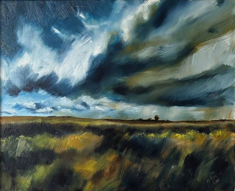 Autumn on Ameland – 2010 was inspired by the serene yet ever-changing landscapes of Ameland, one of the Netherlands' enchanting Wadden Islands. The painting captures the essence of autumn: a moment where the dramatic skies roll over the golden grasses of the countryside, reflecting the island's wild...