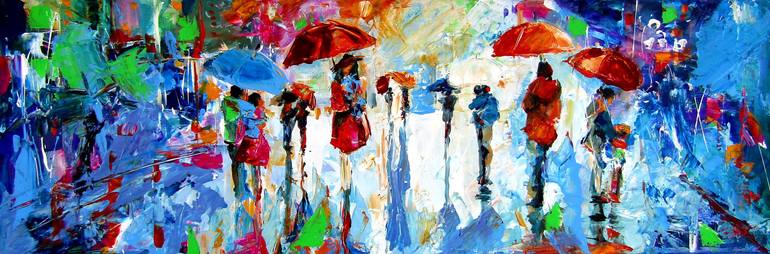 Original acrylic painting on streched canvas. I love the rain and colorful streets with people. Enjoy my original artwork!