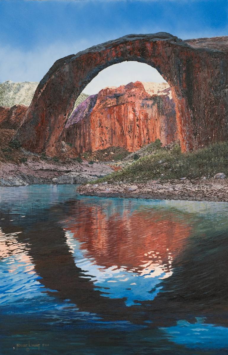 The naturally formed Rainbow Bridge at Lake Powell, Utah, is a sacred site to the Pueblo, Paiute, and Navajo American Indians. Cut by the western winds, this natural arch cut through red rock is thought to be the largest in the world.