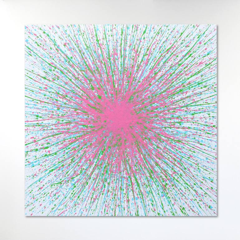This is an abstract work, created with acrylics on canvas. It is signed on the front, varnished and delivered with its own hanging system. The edges are painted to extend the work. This allows it to be hung unframed. Isabelle works with pictorial materials on the ground, in a spontaneous, dynamic a...