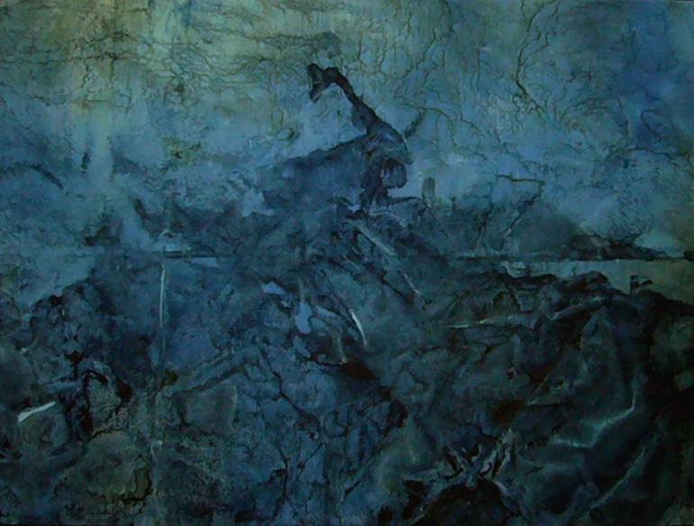 This painting is the result of a collaboration with a musician; working in his music studio, painting with sound vibration produced by his music. The collaboration resulted in a live art performance called "BLUES"