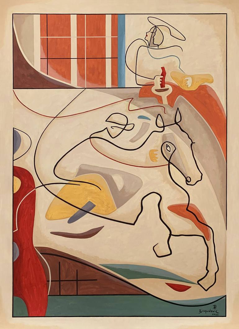 Bernard Simunovic is a Croatian designer and artist, living and working in Germany and Croatia. One of the most compelling aspects of Bernard's art lies in the delicate balance between complexity and simplicity. Each piece is meticulously crafted to present a visually captivating composition that immediately draws the viewer's attention. However, upon closer inspection, the intricate layers and details reveal a deeper complexity beneath the surface. Bernard achieves this harmonious interplay by employing a combination of bold, vibrant colors, refined forms, and minimalistic lines. The simplicity of the black or colored contour line serves as a unifying element throughout the body of work, guiding the viewer's gaze and infusing the pieces with a sense of cohesion. It acts as a visual thread that weaves through the artworks, connecting diverse subjects and narratives. The deliberate use of minimalism in Bernard's works also allows for open interpretation and invites the viewer to actively engage with the art. By stripping away extraneous details, Bernard encourages a focused examination of the core essence and concepts within each piece. This deliberate simplification enables the viewer to delve deeper into the underlying emotions, themes, and messages conveyed. However, beneath this apparent simplicity lies a hidden complexity. Bernard's art is layered with multiple dimensions and subtle intricacies, revealing itself gradually to those who take the time to explore. Each stroke, color choice, and compositional element is carefully considered, contributing to a deeper narrative that unfolds upon closer examination. The juxtaposition of complexity and simplicity in Bernard's works creates a dynamic tension that captivates the viewer. The initial impression of simplicity draws one in, but the intricacies and nuances within the art prompt a prolonged engagement. Bernard's art is a delightful dance between the accessible and the enigmatic, the immediate and the hidden, offering a rich and rewarding experience for those who engage with it. In summary, Bernard's works masterfully balance complexity and simplicity, captivating the viewer with their visually striking compositions while inviting deeper exploration and interpretation. The interplay of minimalistic lines, refined forms, and intricate layers creates a captivating tension that resonates long after the initial encounter with the art.