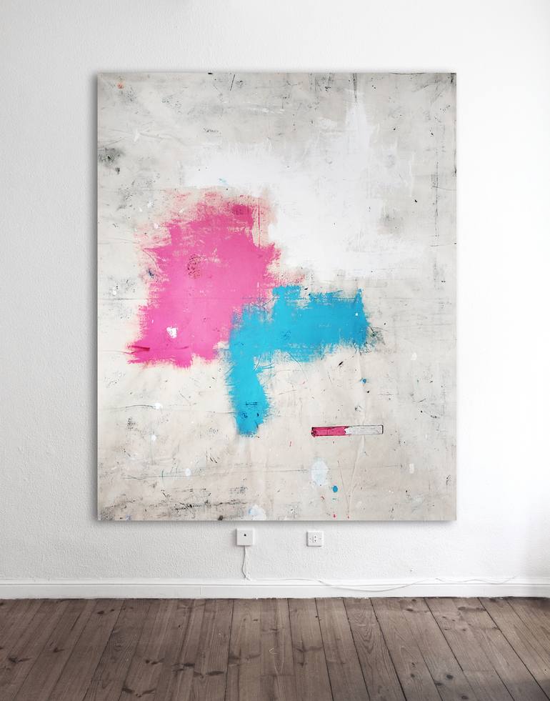 All my work and my creative process is based on three key elements or ideas: the exploration of the subconscious, improvisation, and serendipity. My painting originates in the subconscious. I start from the absence of any idea to come to the idea. The result is something unexpected for myself that through painting comes to light. It is a game in which I find myself and I am myself shocked at the same time. Improvisation is also an important component in my work. I am a musician, and jazz music in particular is essential in my life and in my work. In a way the character of this music is reflected in my work. There is improvisation in the choice of fabrics and in the execution itself, using whatever happens to be in my studio: available colors, pieces of paper that I find on the ground, rolls of tape or pieces of wood, cardboard or paper. All these elements harmoniously compounded give rise to the composition of the canvas. The universe is in the end the result of coincidence and similar to nature, serendepity is fundamental in my creative process. Searching making discoveries by accidents and sagacity, manipulating chance to control the outcome, in the absence of any specific project, but continuously transforming the work in search of beauty. And beauty may be in something old, broken, dirty, in the chipped and cracked walls of a facade, the ruins of a building or in the cracked roles of billboards. But also in a simple line, in an apparently sloppy figure, on a piece of adhesive tape, a rayon, a doodle or in an illegible text. My work in the studio is very physical. I always paint on the canvas with no frame, sometimes extendng it directly on the floor. The fabric tends to fold, gets wrinkled and paints itself. The fabric makes the work, and gives rise to works depicting the tension and confrontation that occurs when they hit the subconscious, improvisation and serendepity. They embody the combination of these three forces, but always controlled and manipulated by the skill and intuition of the painter (sagacity), who becomes the catalyst or active agent of a creative process understood as a game whose outcome becomes interesting for the painter, as so unexpected.