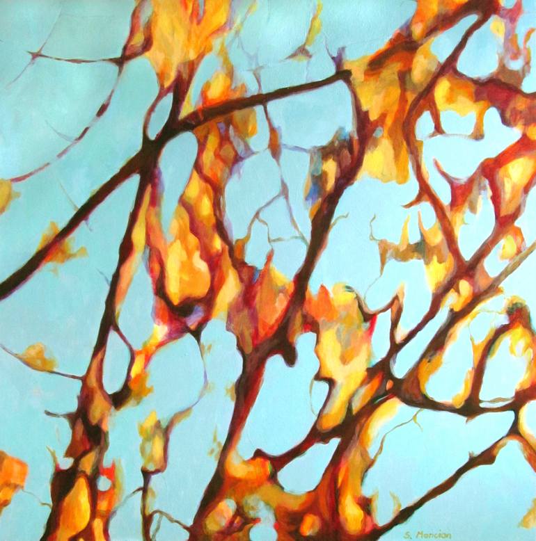 This painting is part of the Tree Paintings series. The colors are vibrant and there are some beautiful subtleties achieved with the layering of subsequent layers of transparent color. This is a perfect example of nature inspired semi-abstract art. I find this to be a fascinating area of pictorial ...